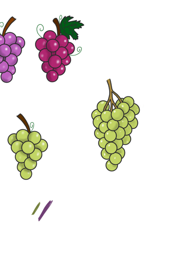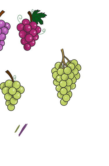 Tout a commencé en dessin. Mon but était de créer une véritable petite famille en mêlant le raisin et les expressions françaises.